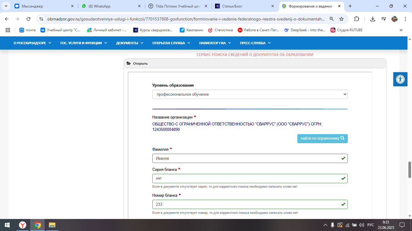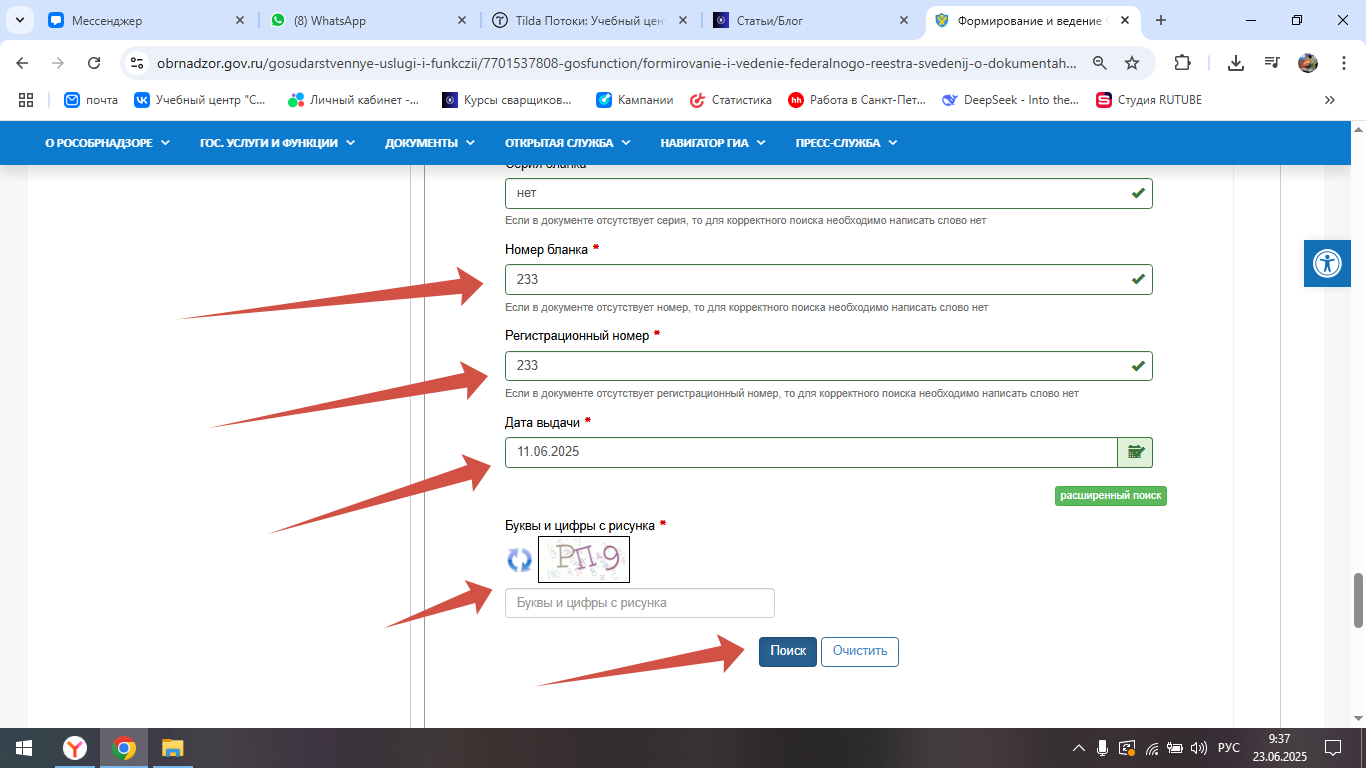 Вбиваем капчу и нажимаем поиск. И все, если вы добавлены в реестр, то вам выйдет окно с вашими данными